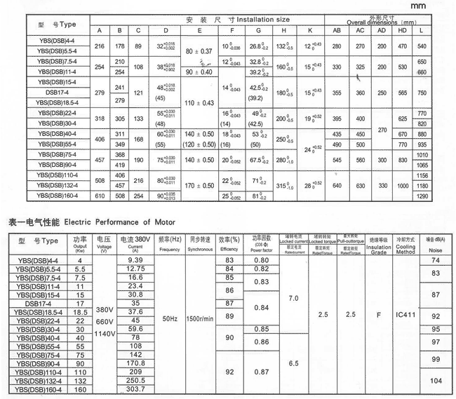 三相異步電動機步安裝尺寸及外形尺寸