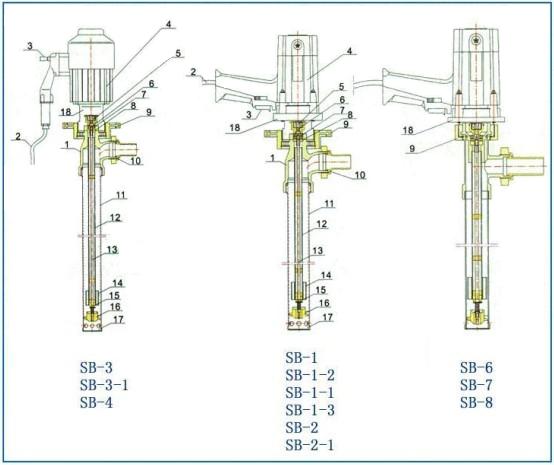 抽液泵可以直接插入物料桶(最大適用于符合GB/325-1991標準的鋼桶)中抽取桶中液體。可輸送各種油料、帶腐蝕性化學藥水、其他液體。根據(jù)所輸送的液體性質,電動抽液泵泵體沾濕部分材料可選用鋁合金、不銹鋼,316不銹鋼等組成。驅動電機配備單相標準電機,防爆電機,高轉速電機等多種選擇。根據(jù)材質,電機不同,型號可分為: SB-1,SB-2,SB-3,SB-3-1,SB-4,SB-5,SB-6,SB-7,SB-8系列鋁合金,不銹鋼或防爆型。我們備有詳細資料,歡迎索取。抽液泵可按防爆區(qū)域和非防爆區(qū)域選用,凡在防爆區(qū)域使用配置防爆型電機,這類電機分三種機組型號,當使用條件含各種易燃易爆混合時,應選用最高組級。該系列泵可輸送酸、堿、鹽、油品、飲料等介質,廣泛用于化工、石油化工、精細化工、染料化工、環(huán)保、水處理、醫(yī)藥、食品等部門。同時適用于中小型油田、油庫、煉油廠、加油站、農機站、企事業(yè)單位、車隊、車輛船舶等輸送汽油、煤油、柴油、輕質燃油的理想工具。